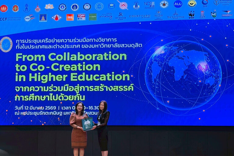 นางสาวปิยะพร ยุติธรรม กรรมการบริหาร บริษัท พี.เค. เอ็กซิบิชั่น แมนเนจเม้นท์ จำกัด ผู้จัดงานไทยเที่ยวไทย รับมอบของที่ระลึกจากรองอธิการบดี มหาวิทยาลัยสวนดุสิต ในโอกาสร่วมประชุมเครือข่ายความร่วมมือทางวิชาการกับทางมหาวิทยาลัยสวนดุสิต วิภาคหลักสูตรคณะการจัดการให้กับคณาจารย์เพื่อประเมินผลการเรียนการสอน และให้นักศึกษามาฝึกงานเชิงปฏิบัติการภายในงานไทยเที่ยวไทย ด้วยดีตลอดมา